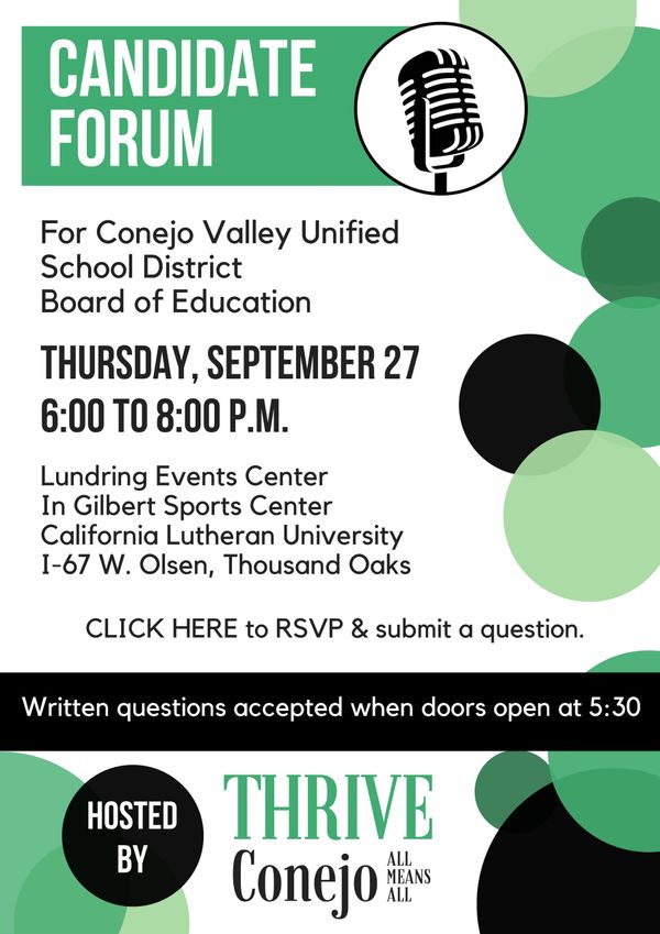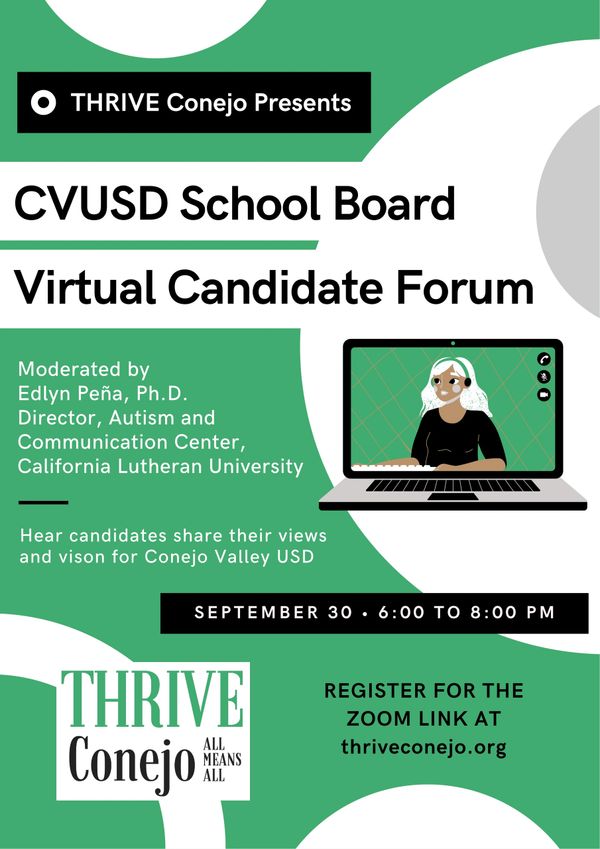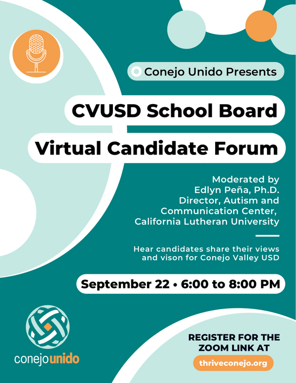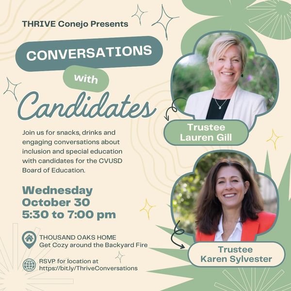 Join us for snacks, drinks and engaging conversation about inclusion and special education with candidates for the Conejo Valley Unified Sch...