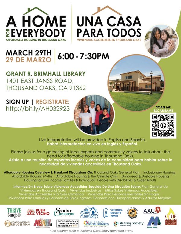 Please join us for a gathering of local experts and community voices to talk about the need for affordable housing in Thousand Oaks.